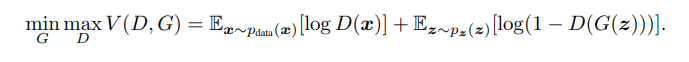 즉, D,G는 minmax game을 하는 두 플레이어이며 수식을 V(G,D)로 표현한다.